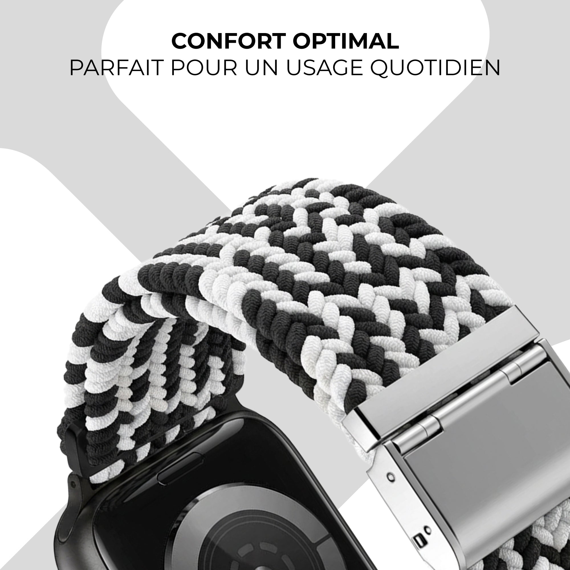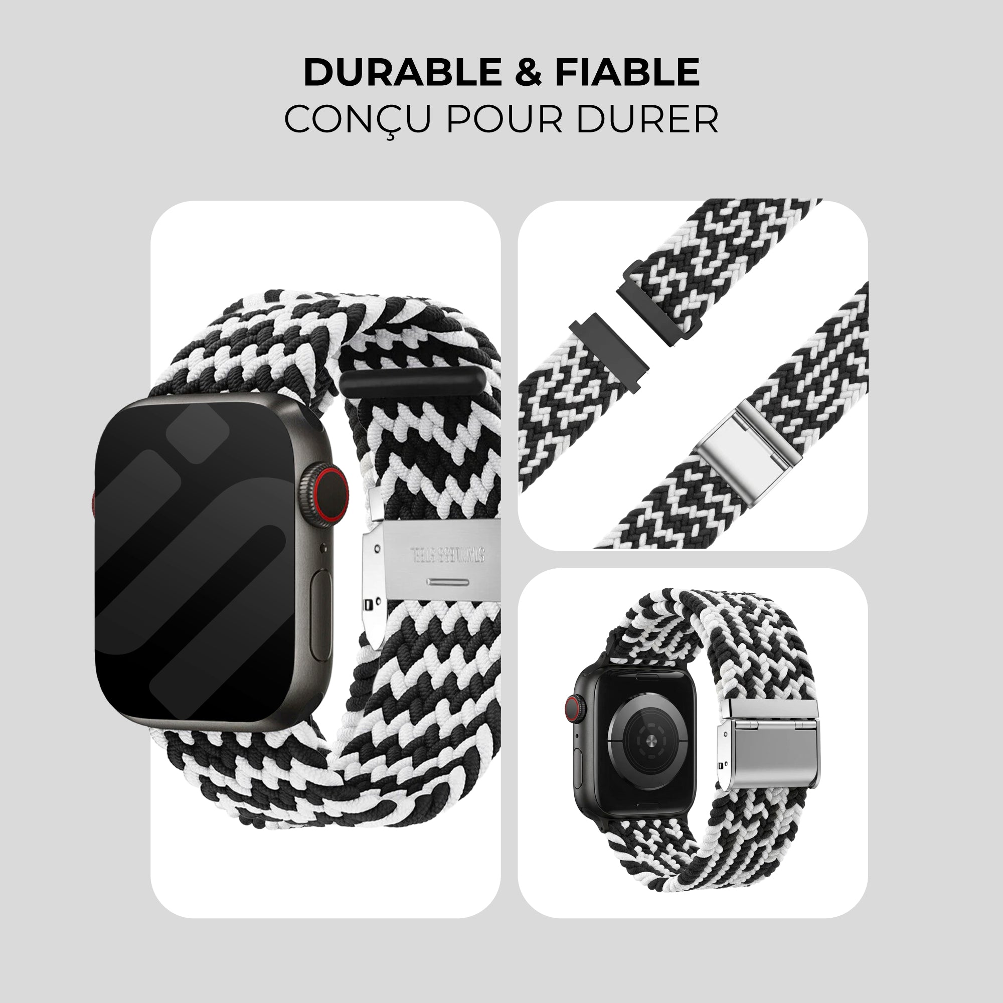 Bracelet tressé Apple Watch (noir/blanc)