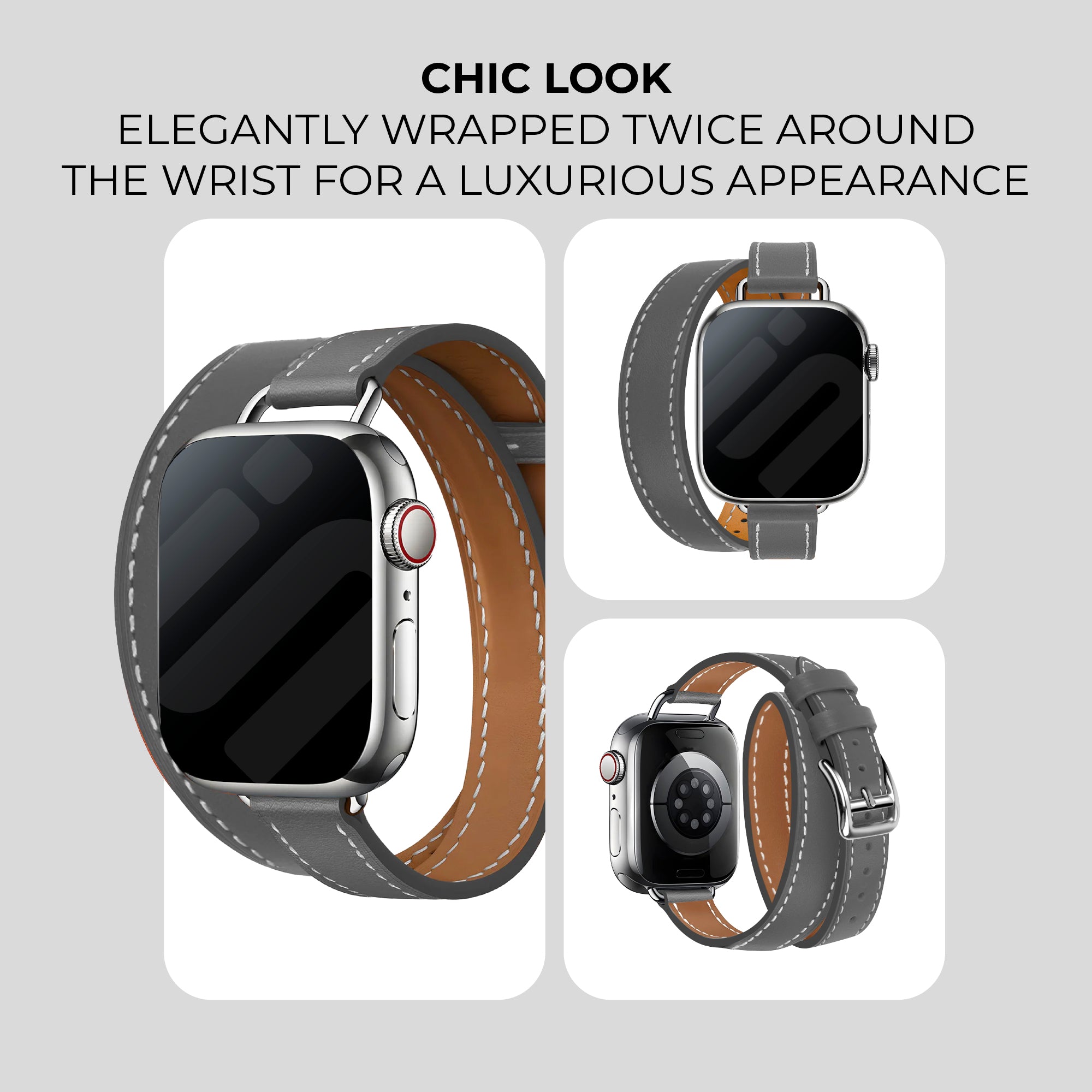 Apple Watch Leather Double Tour Strap (Grey)