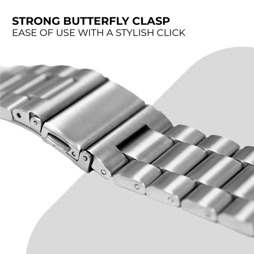 This steel strap for the Apple Watch is a stylish wristband made from high quality stainless steel, featuring a sturdy folding clasp closure. The strap will give your watch a look and feel associated with classic wristwatches and luxury. The individual links are made to a high standard which ensures supple movement and high comfort. The steel strap is available in multiple colours.