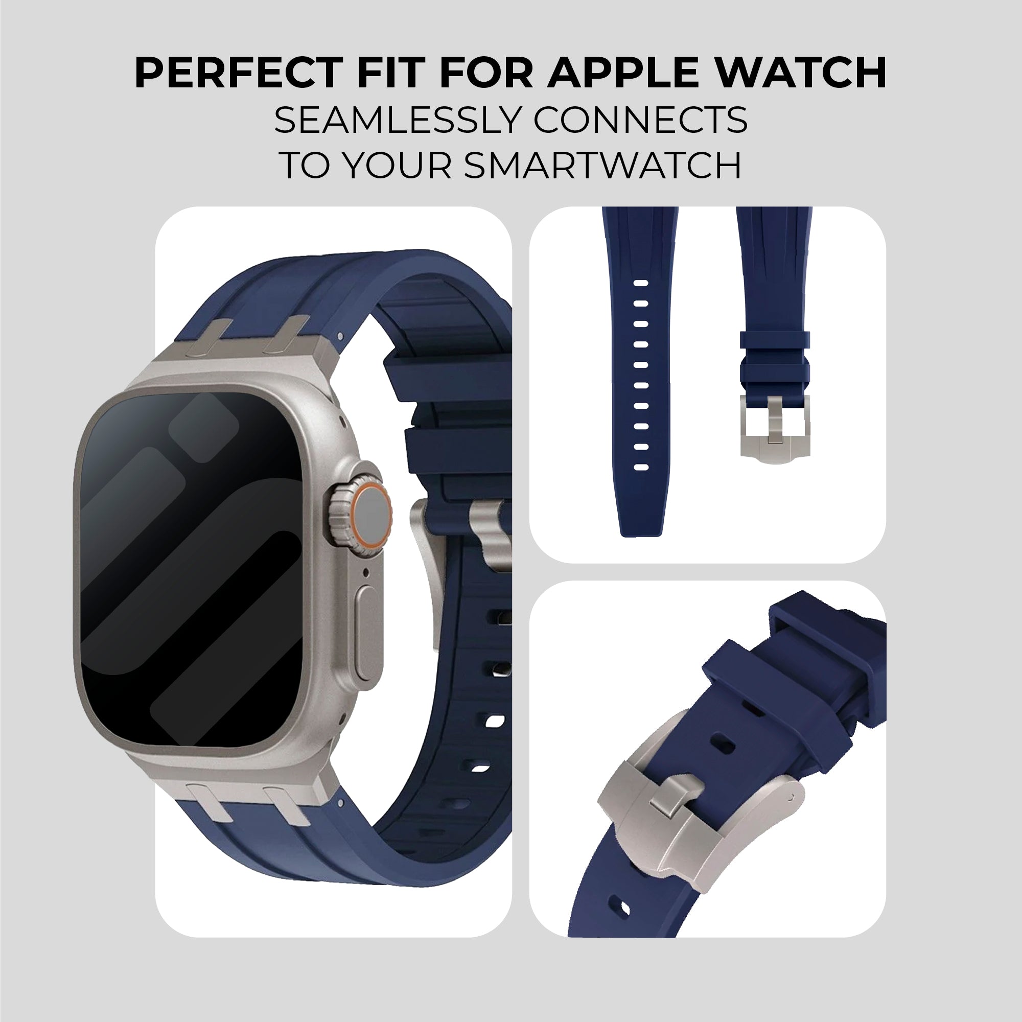 Apple Watch Premium Liquid Silicone Strap (Blue with Titanium)