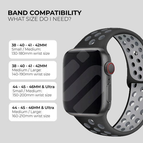 Finding the right size strap for your smartwatch can sometimes be tricky. Luckily it's pretty easy for the Apple Watch! No matter which Apple Watch model you've got, this sport band will fit. Apple has used the same connector since the first iWatch was made. So from Series 1 to Series 9, Apple Watch SE, or even the Ultra, this strap will fit without a problem. Just make sure you select the right size!