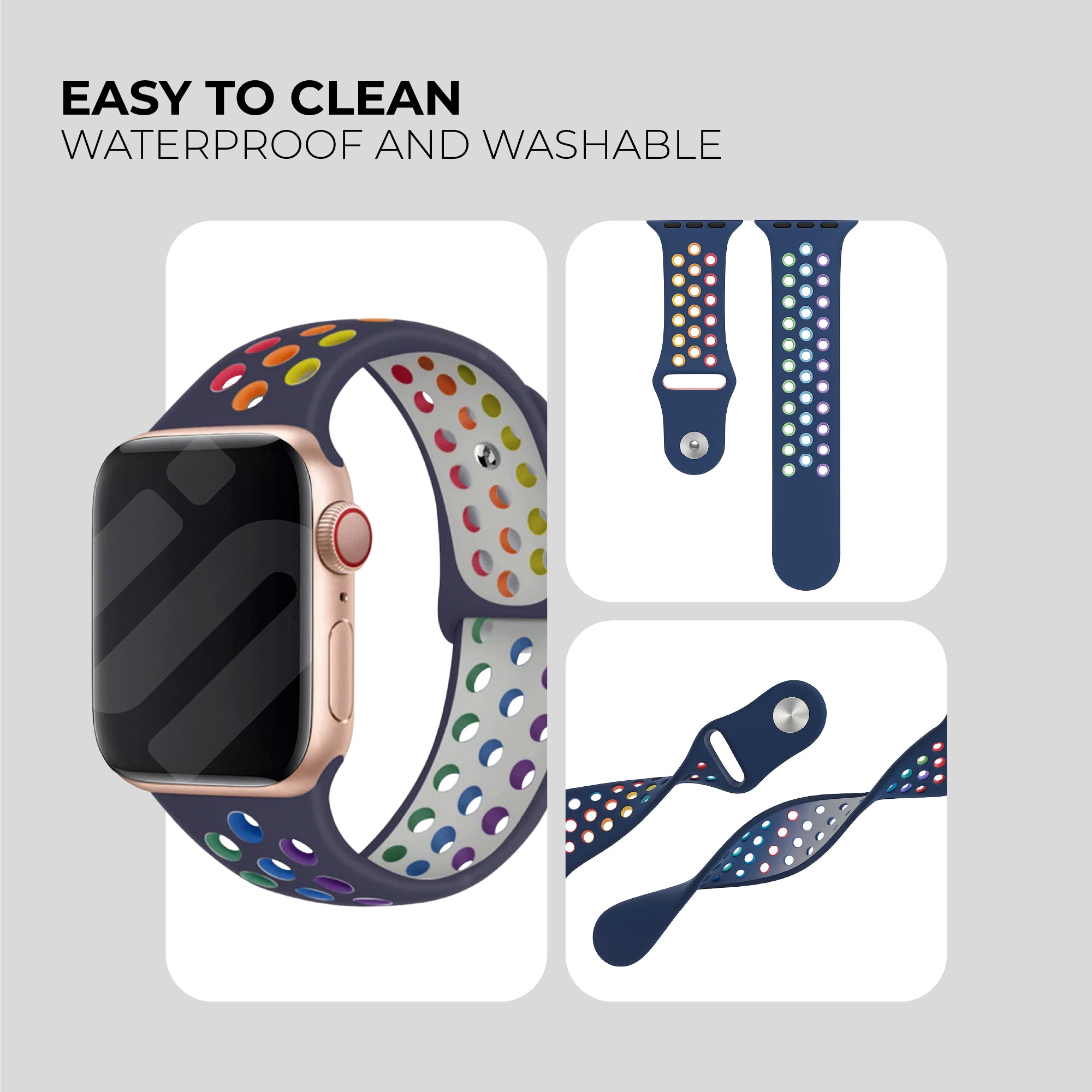 Apple Watch Sport Strap (Dark Blue/Rainbow)