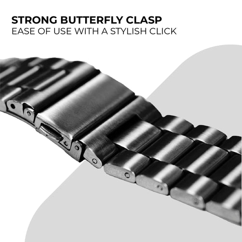 This steel strap for the Apple Watch is a stylish wristband made from high quality stainless steel, featuring a sturdy folding clasp closure. The strap will give your watch a look and feel associated with classic wristwatches and luxury. The individual links are made to a high standard which ensures supple movement and high comfort. The steel strap is available in multiple colours.