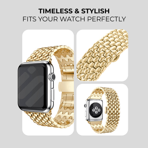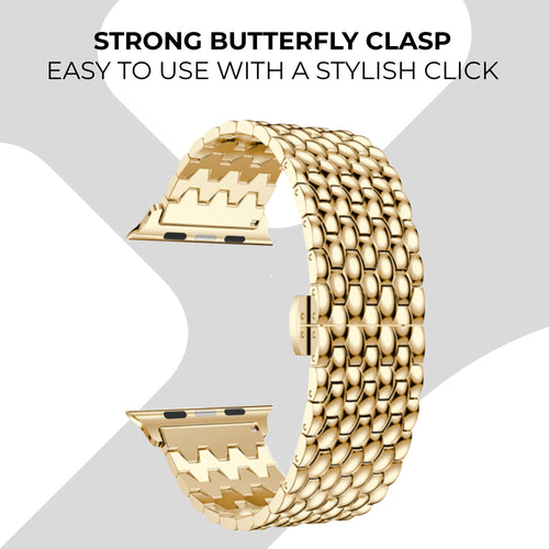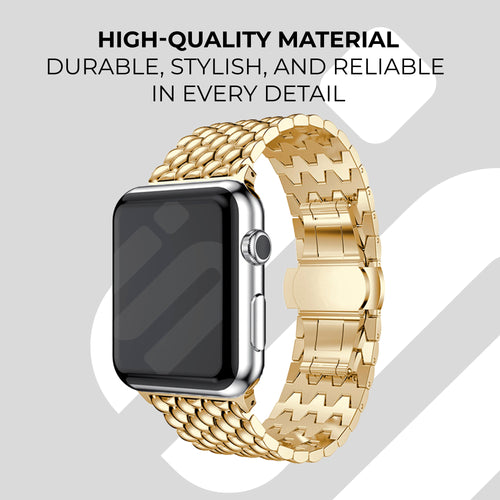 A gold Steel Dragon Strap for the Apple Watch