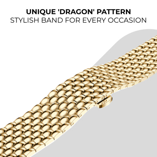 The strap is named after the pattern of the links, which gives the appearance of a dragon's skin. A unique and luxurious appearance comes as a result. It combines perfectly with both casual or formal outfits. The strong butterfly clasp ensures a good fit.