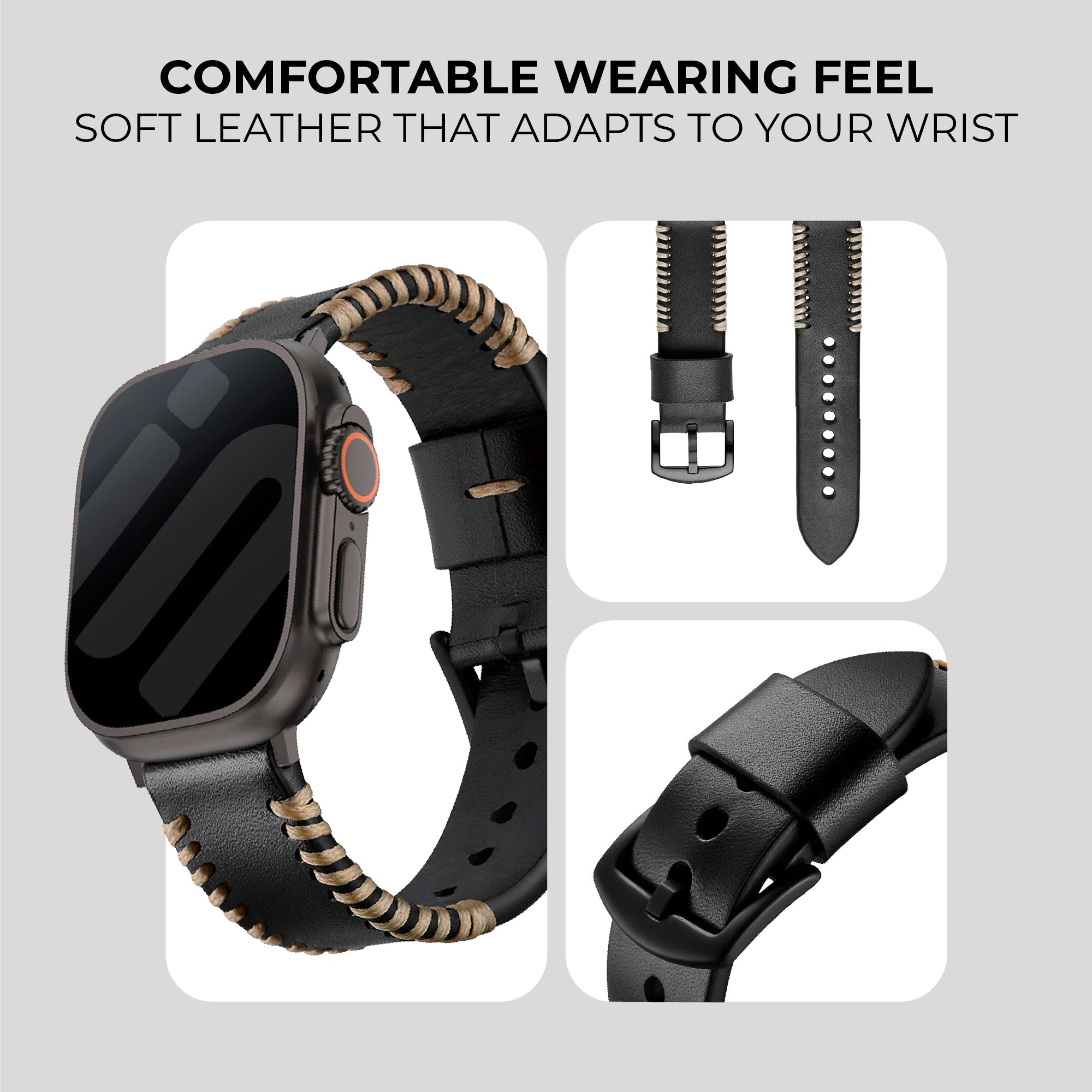 Genuine leather strap for the Apple Watch (black)