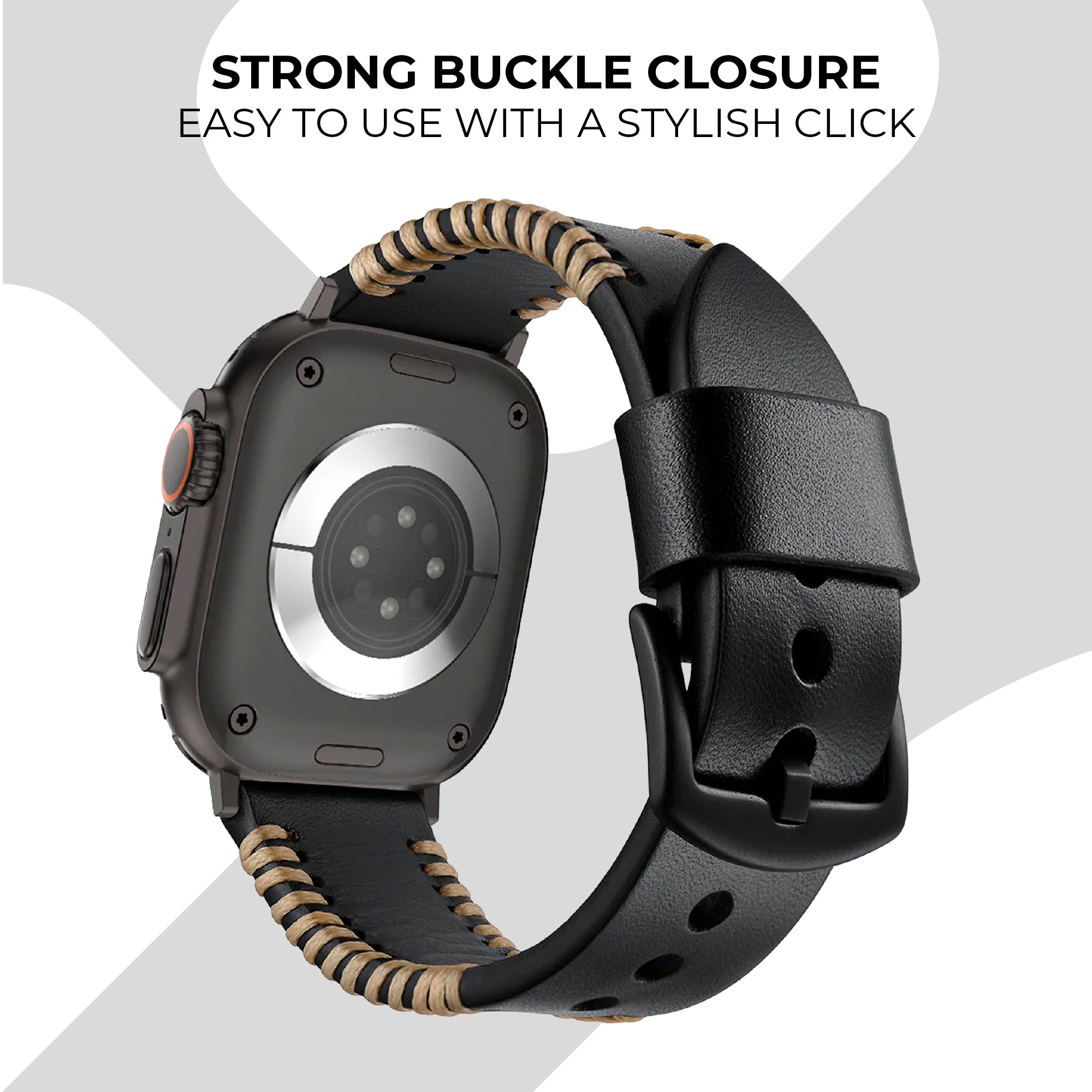Give your Apple Watch a completely new look with this genuine leather band with beautiful unique stitching. A beautiful and stylish watch band that can be worn on almost any occasion. Suitable for everyday, formal and casual use. The leather feels smooth to the skin and can be worn all day without any problem. With the traditional buckle closure you easily set the watch strap to the right size. Choose from 2 different colours.