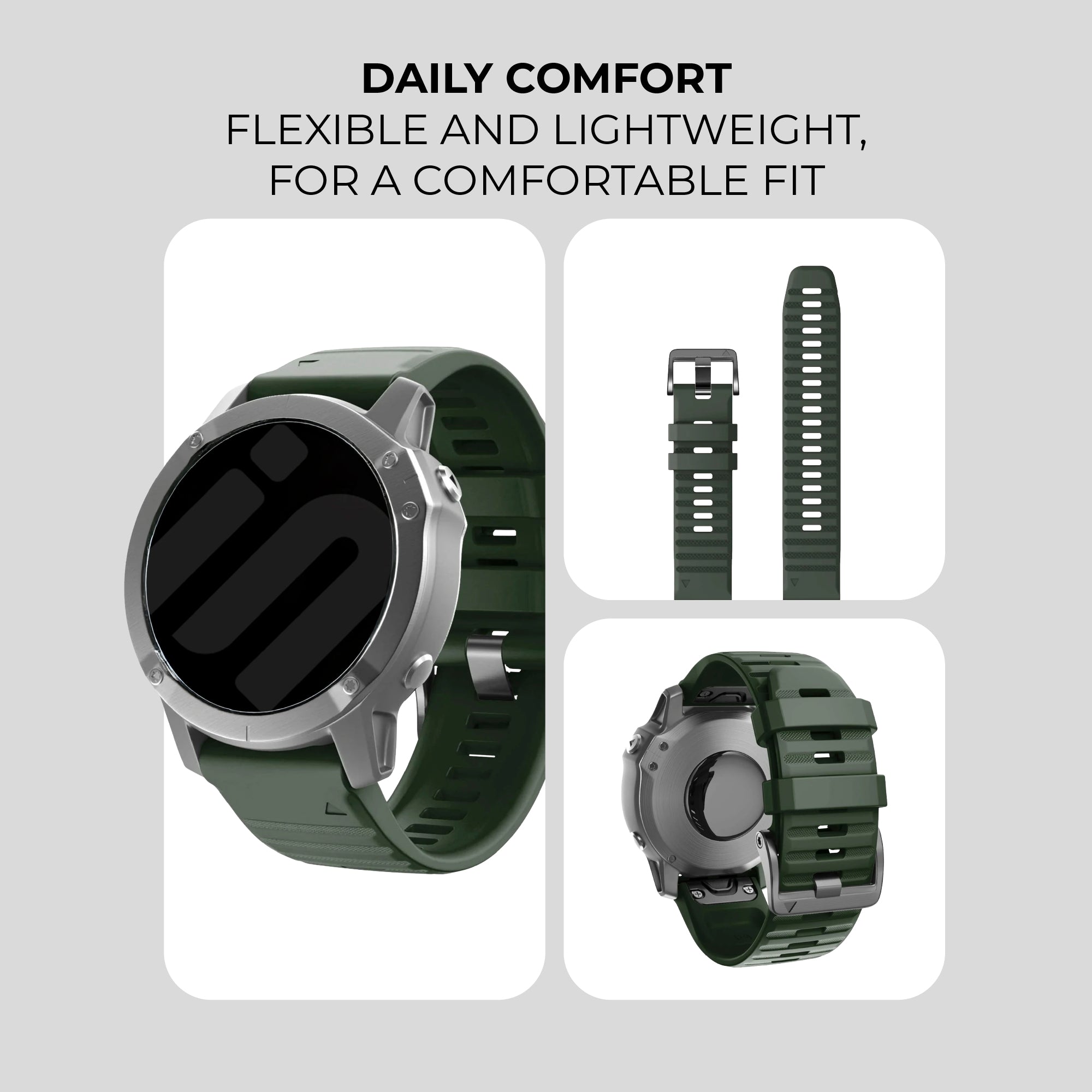 Silicone smartwatch straps are very durable and are known for their long lifespan. Excessive exposure to sun or chlorinated water may shorten the lifespan of a silicone watch strap.