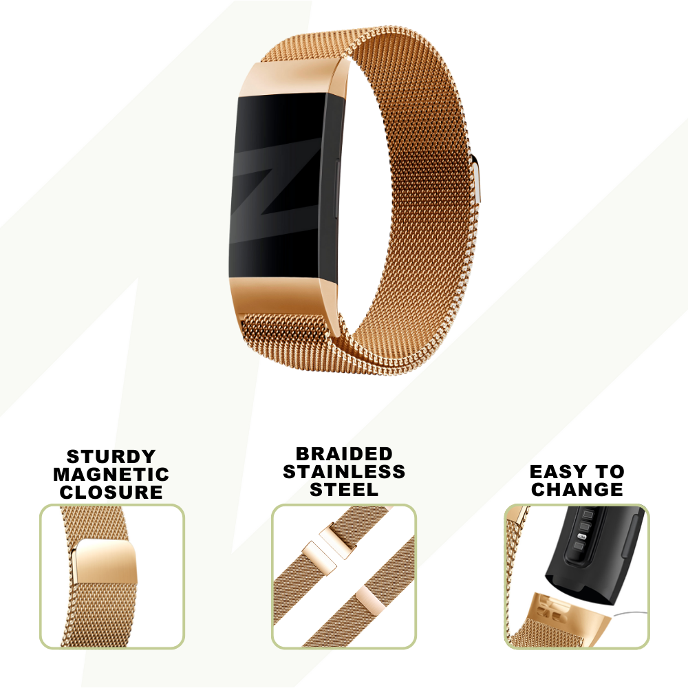 Bandz Fitbit Charge 4 Milanese Loop Strap (Rose Gold)