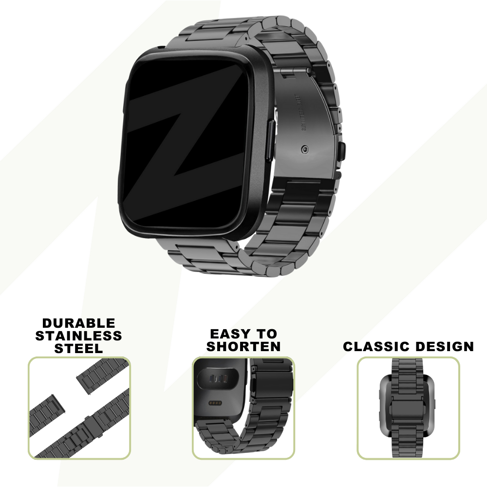 Bandz Fitbit Versa Steel Strap 'Classic' (Black)