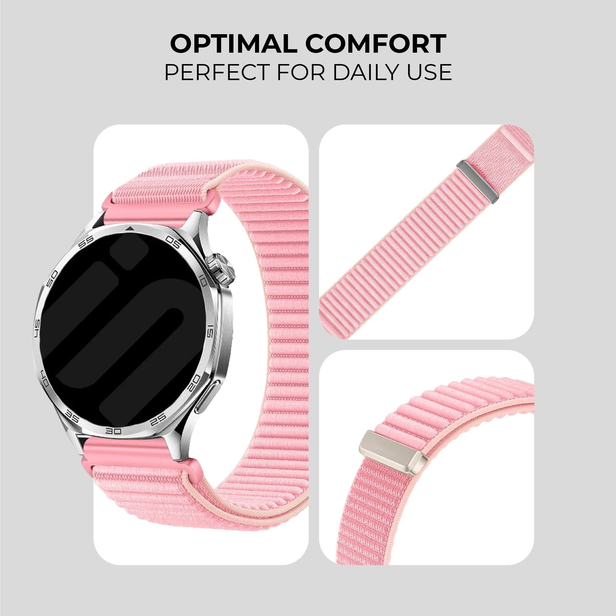Nylon smart watch straps are often the best choice for every day wear. They are the most comfortable to wear for a long period of time and can be used for sports as well.