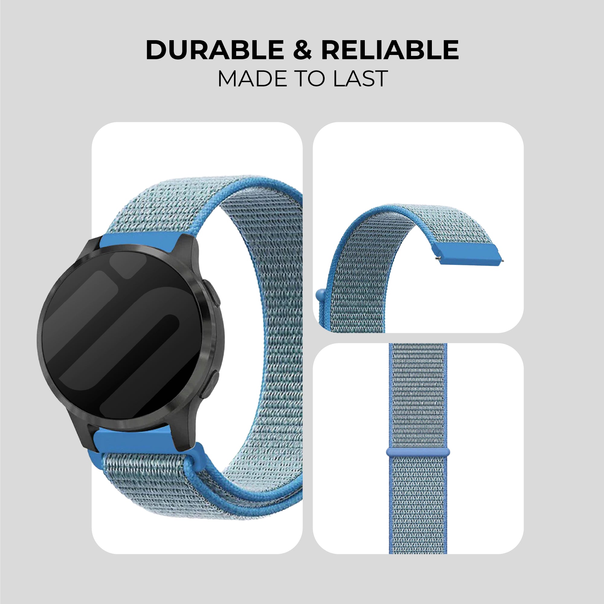 Blue coloured nylon strap for the Xiaomi Amazfit GTR.