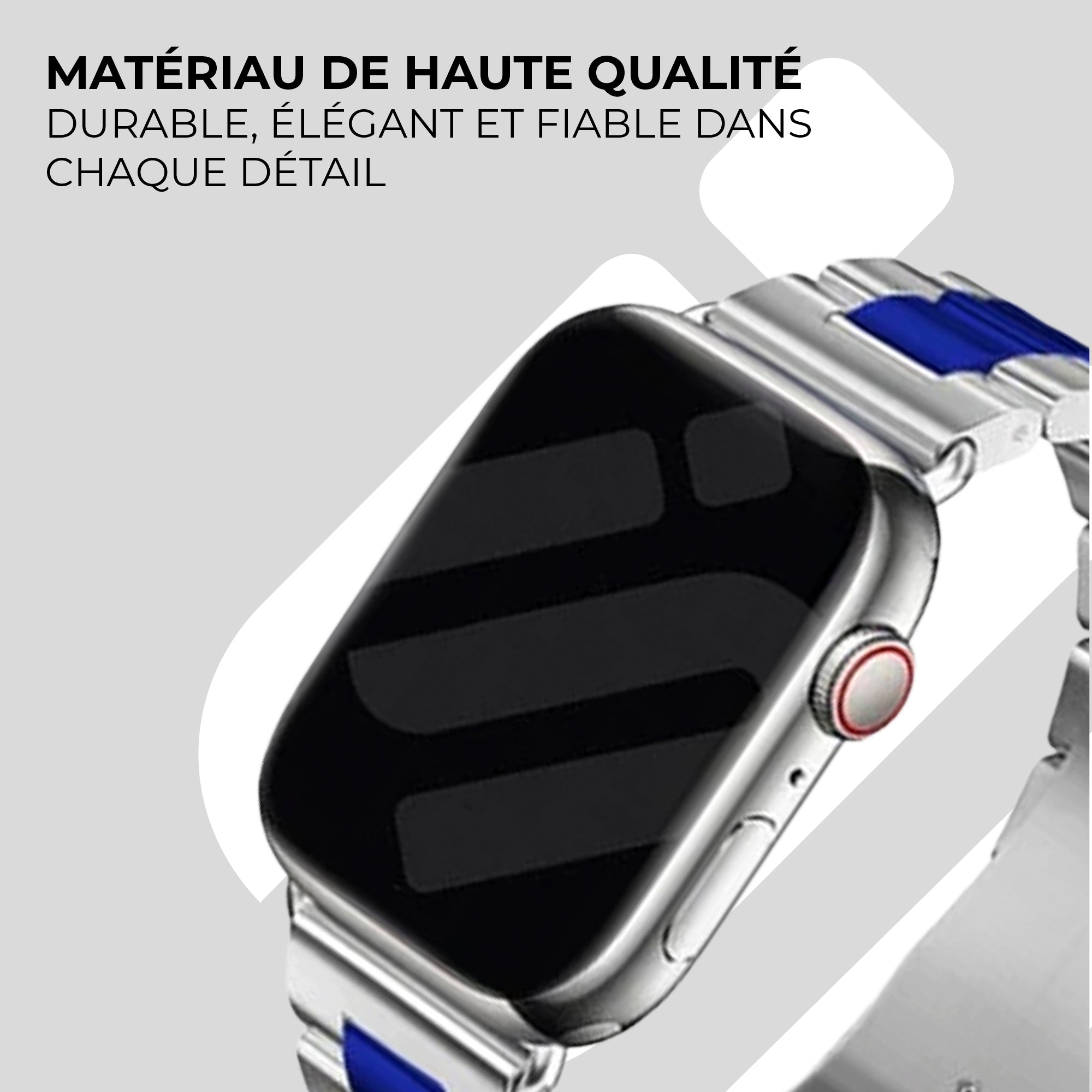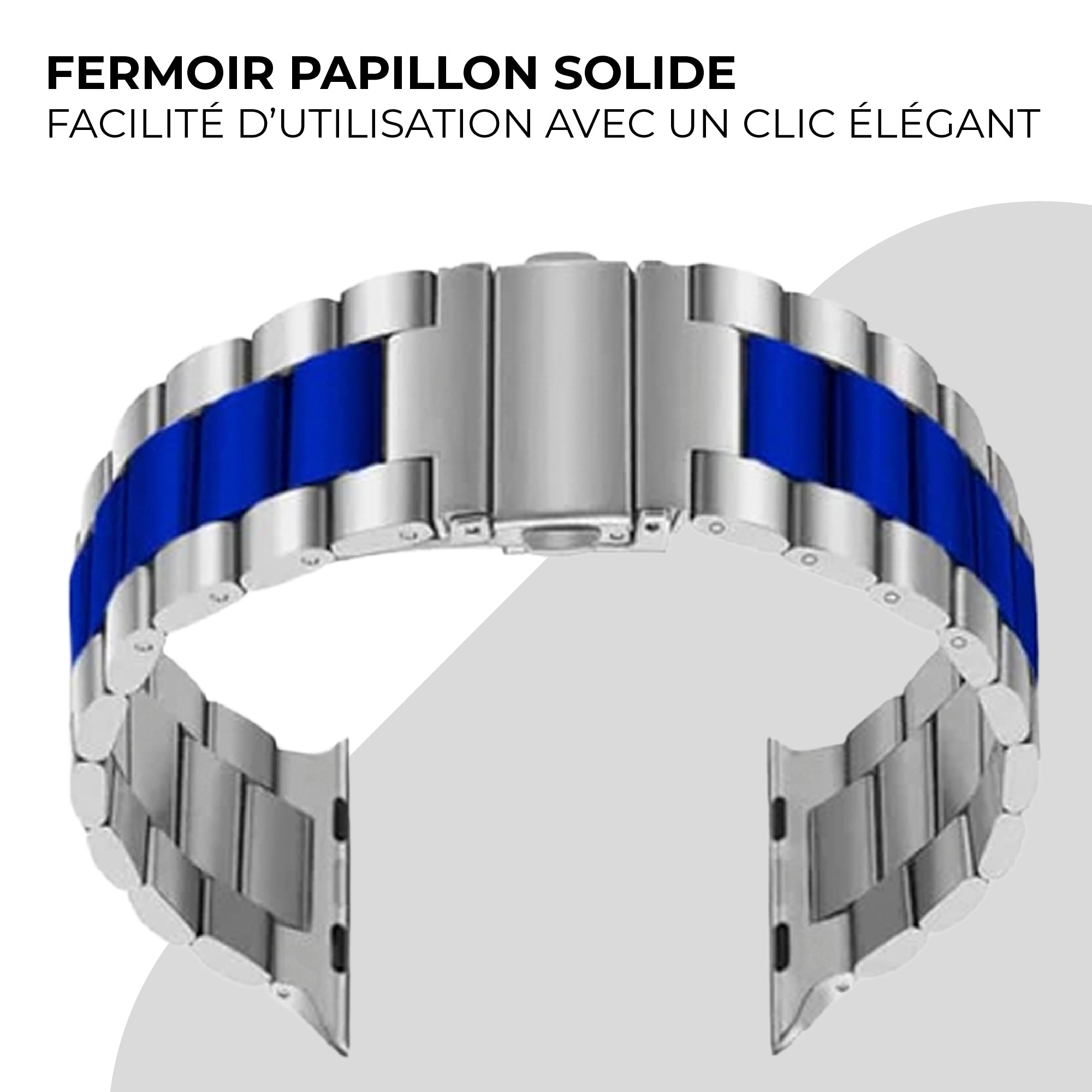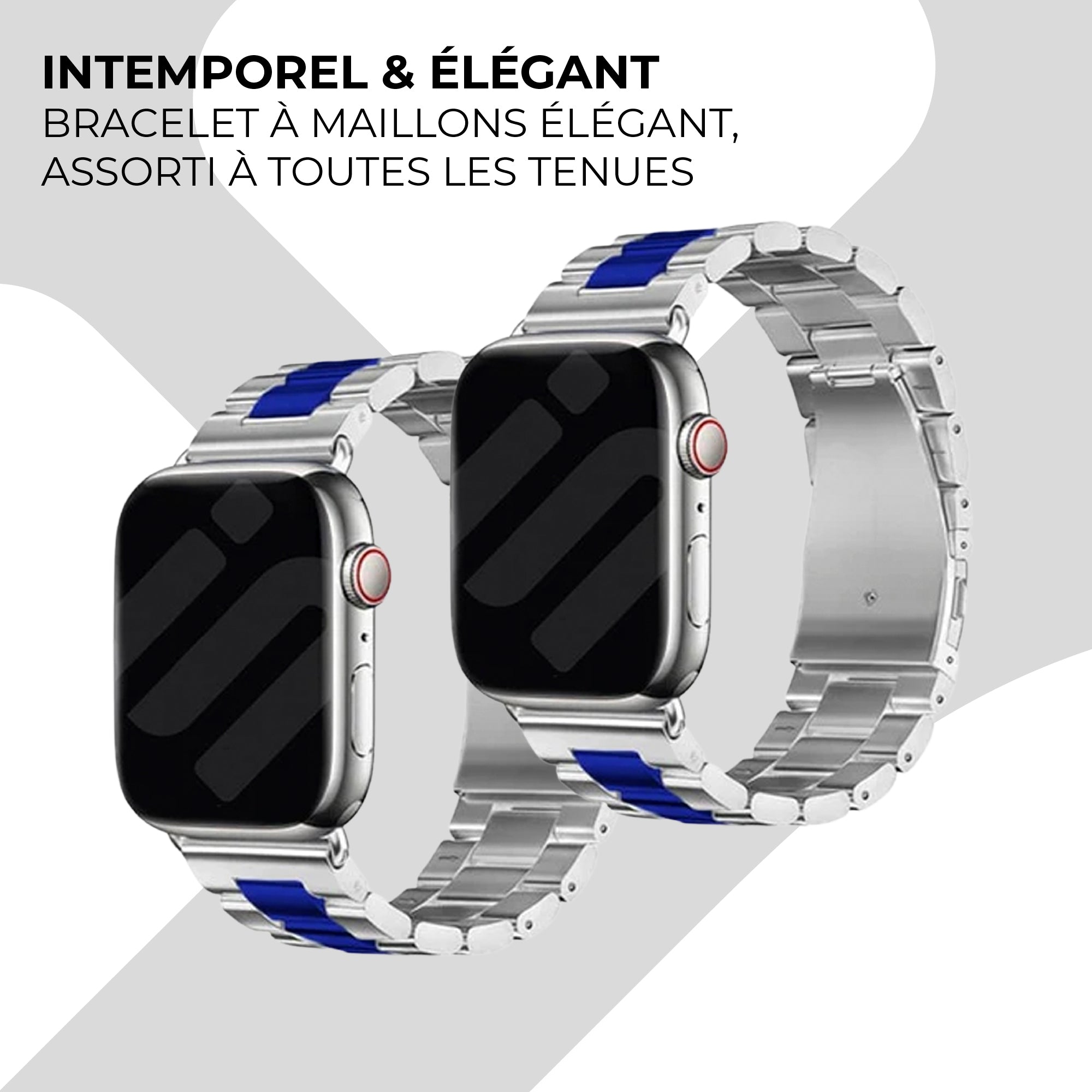 Bracelet acier Apple Watch (argent/bleu)