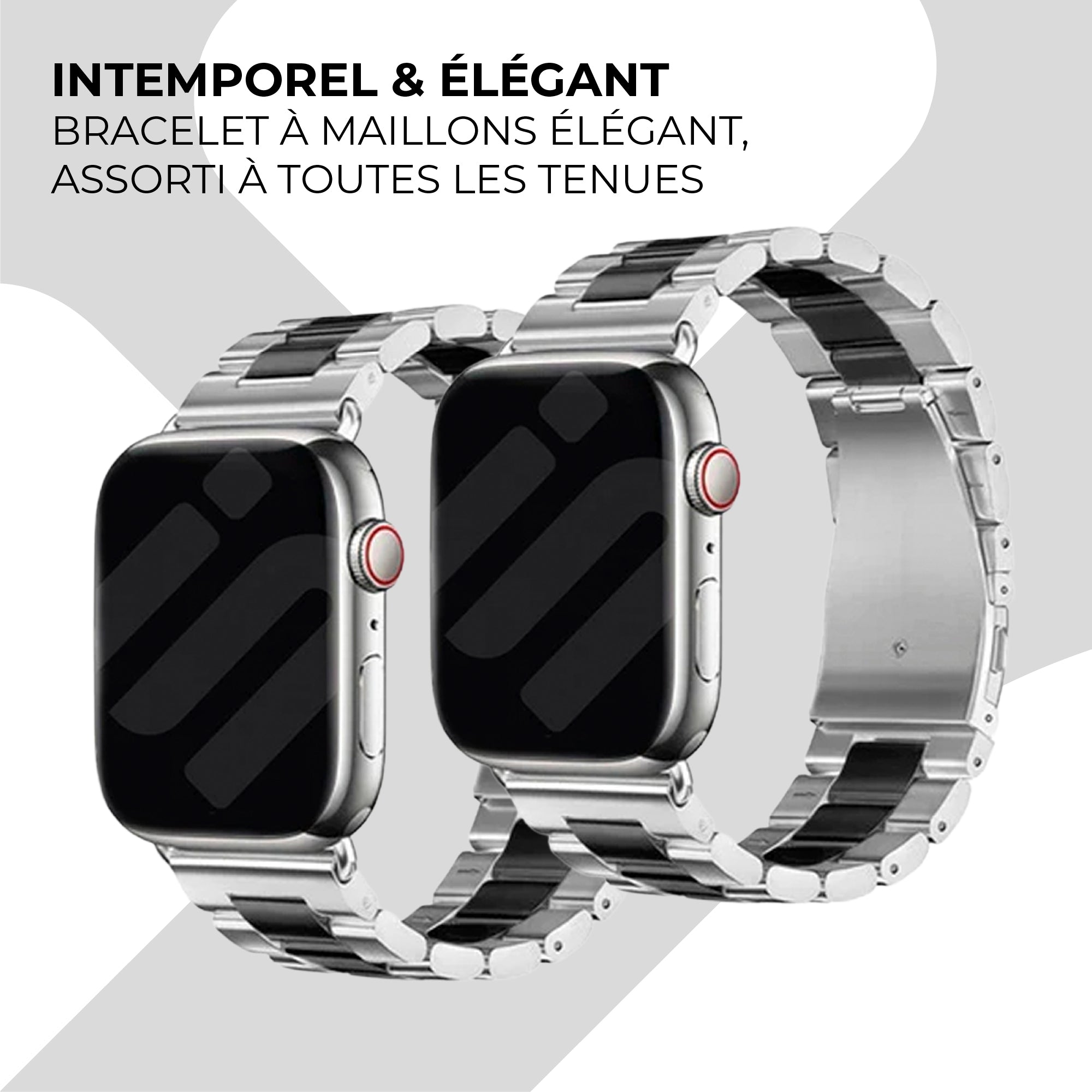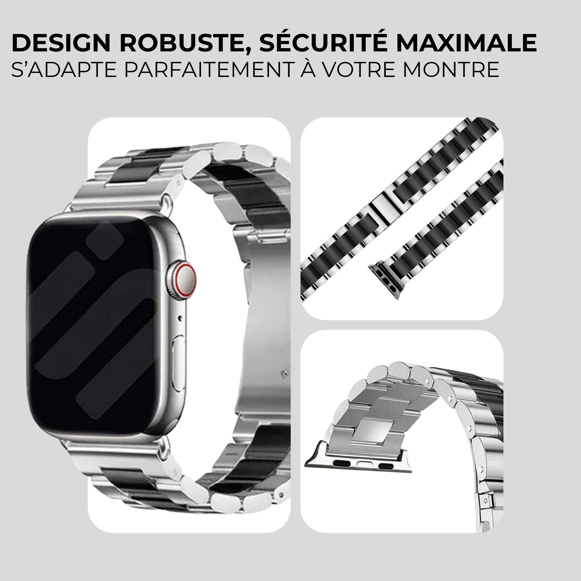 Bracelet acier Apple Watch (argent/noir)