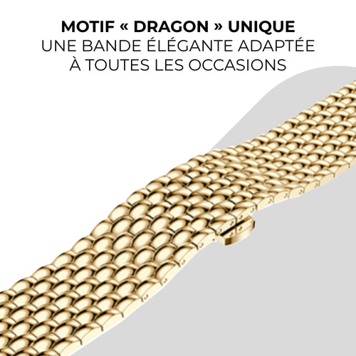 Le bracelet dragon en acier pour Apple Watch est un bracelet de montre élégant au look unique. Les maillons ont un design raffiné pour que le bracelet s'adapte parfaitement au poignet. De plus, le bracelet est robuste et fabriqué en acier inoxydable, ce qui le rend durable.
