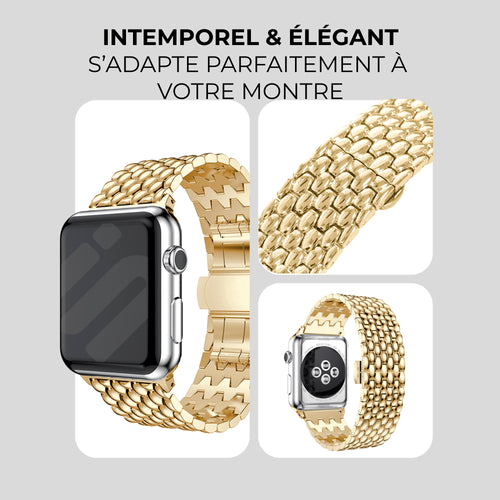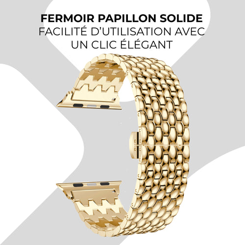 Bracelet Apple Watch en acier avec motif de dragon (Or)