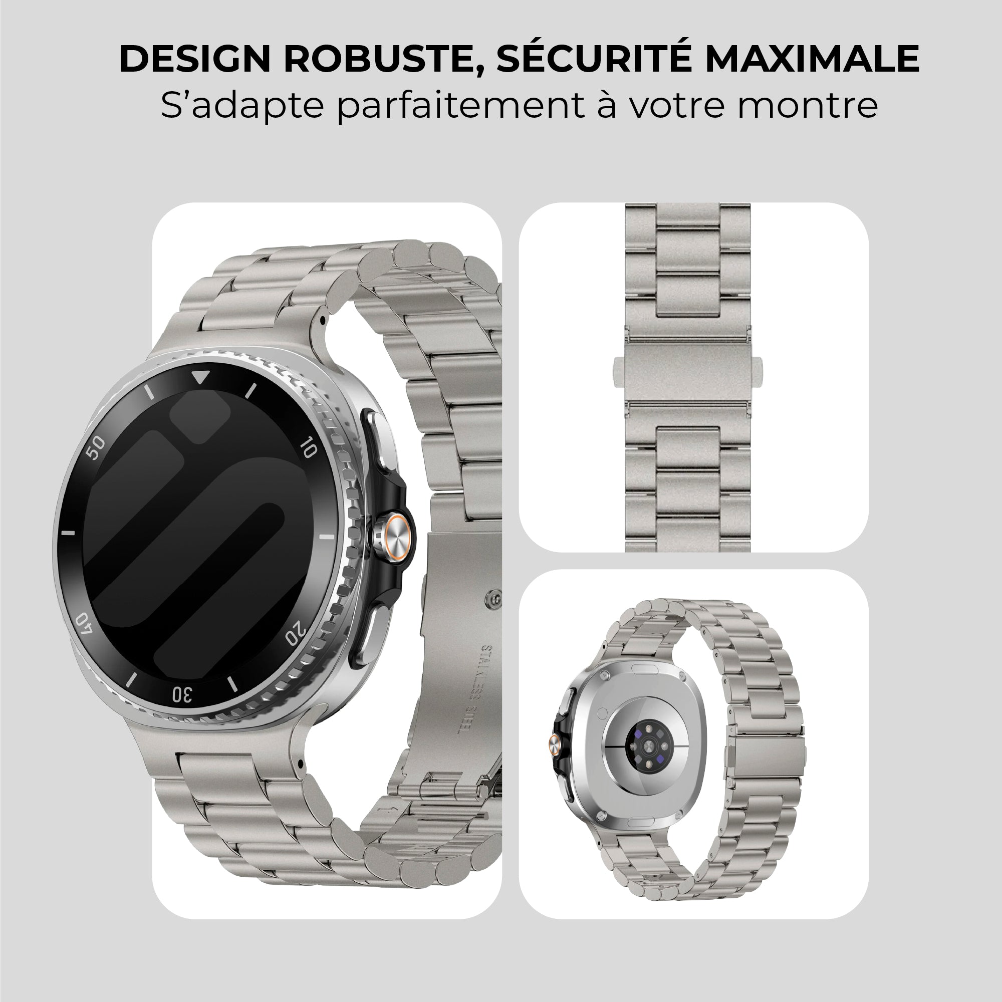 Bracelet acier Samsung Galaxy Watch 8 Classic (titane)