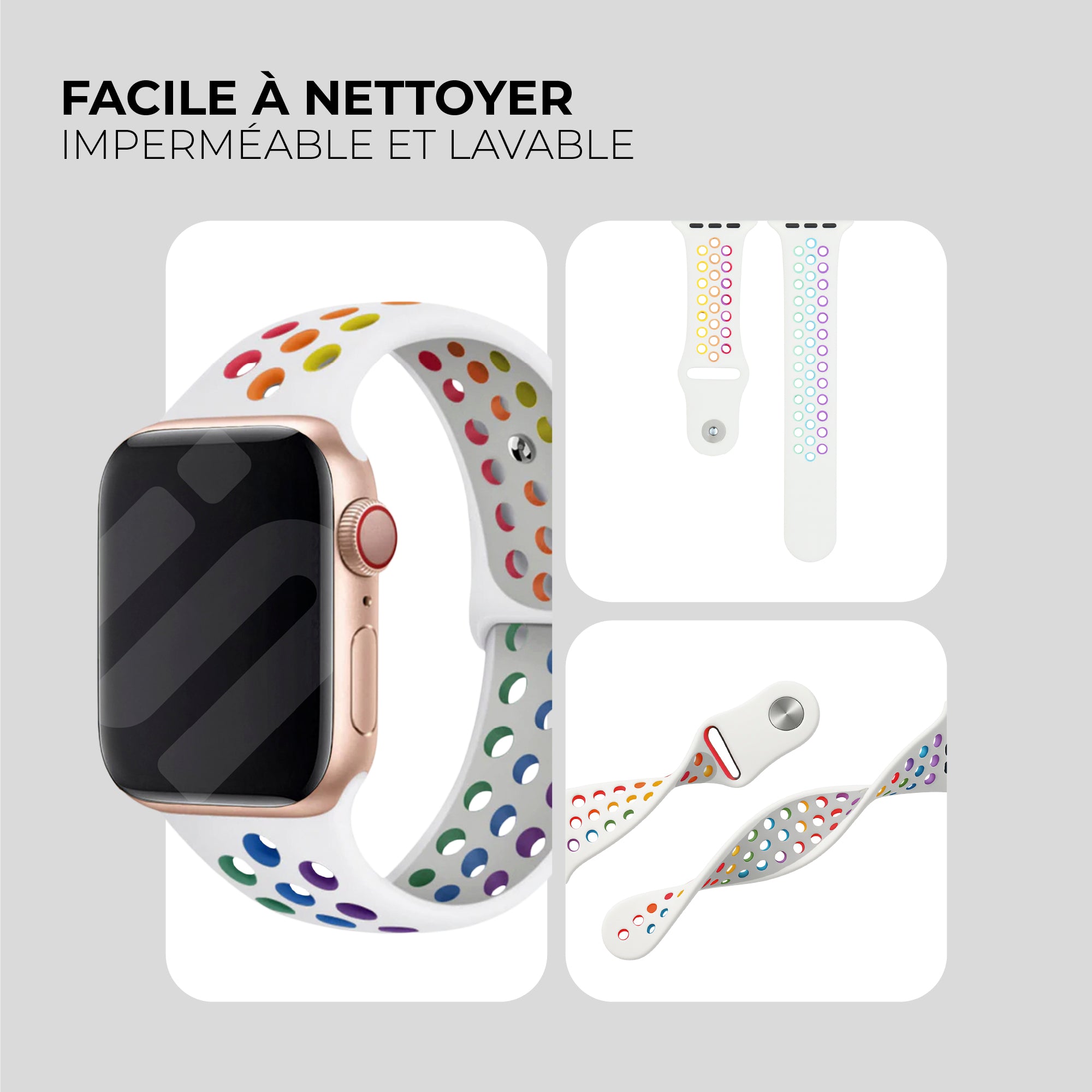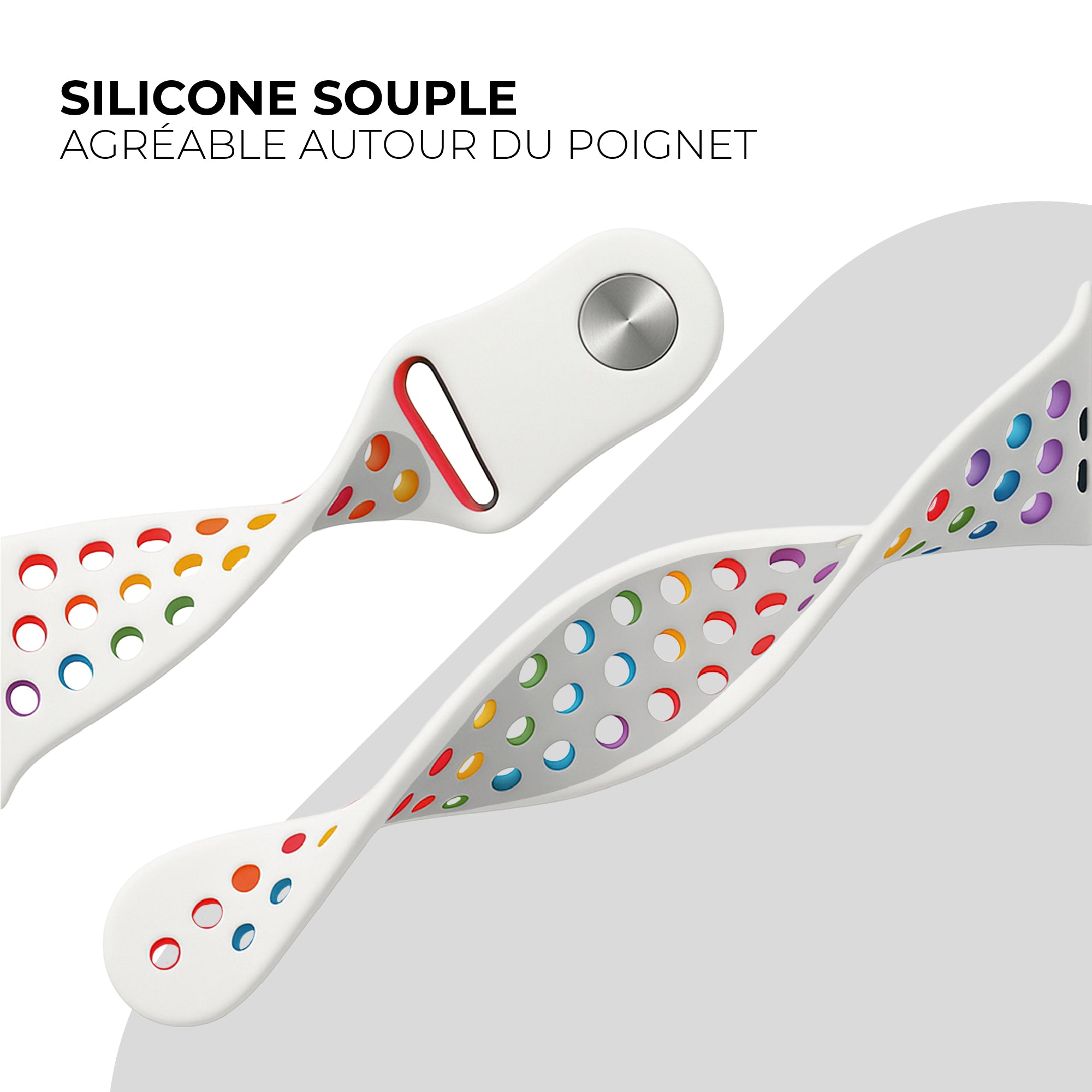 Bracelet sport Apple Watch (blanc / multicolore)