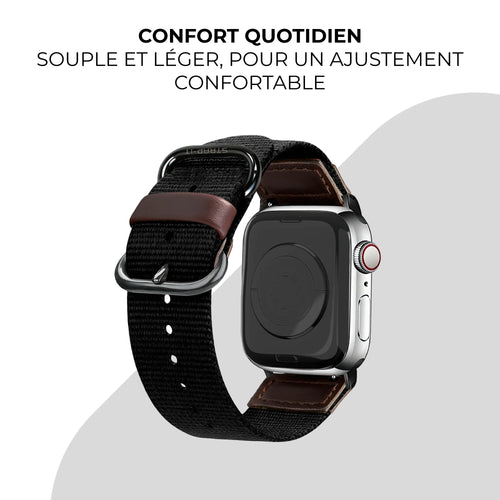 Sublimez votre Apple Watch Ultra avec ce bracelet en toile noir alliant design classique et praticité au quotidien.