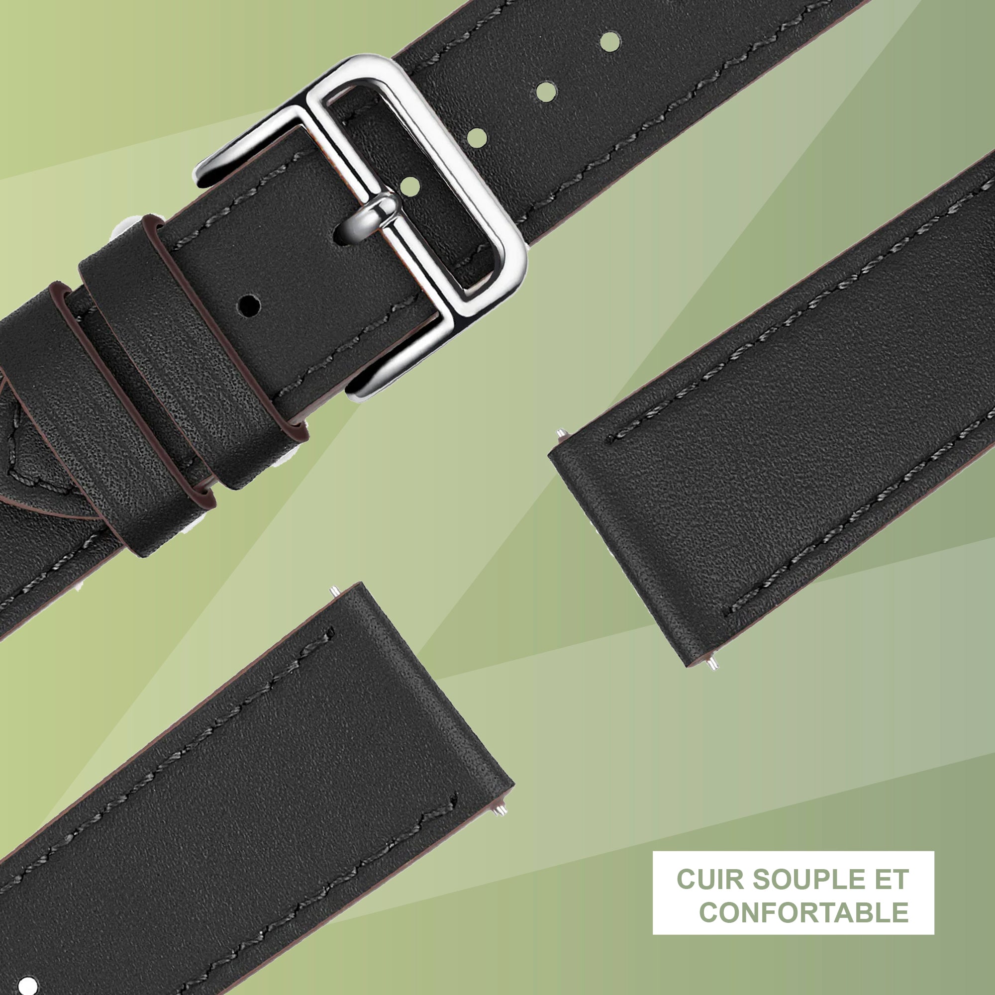 Les bracelets en cuir pour montres intelligentes peuvent nécessiter une période de rodage avant que le cuir ne devienne souple et ne s’adapte à votre poignet. Cela peut prendre quelques jours d’usage régulier. Après cette période de rodage, les bracelets en cuir sont souples et confortables à porter.