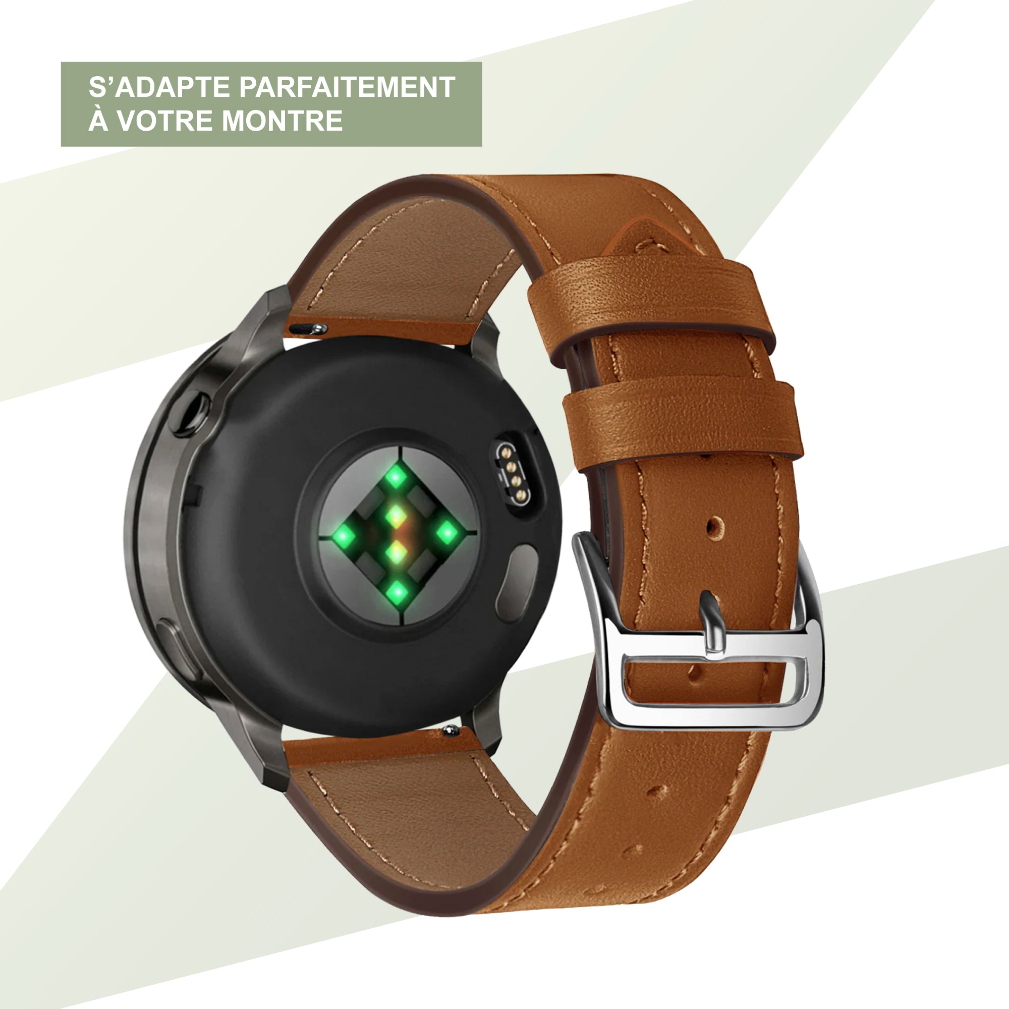 Bandz Bracelet cuir 'Deluxe' Garmin Forerunner 645 (marron)