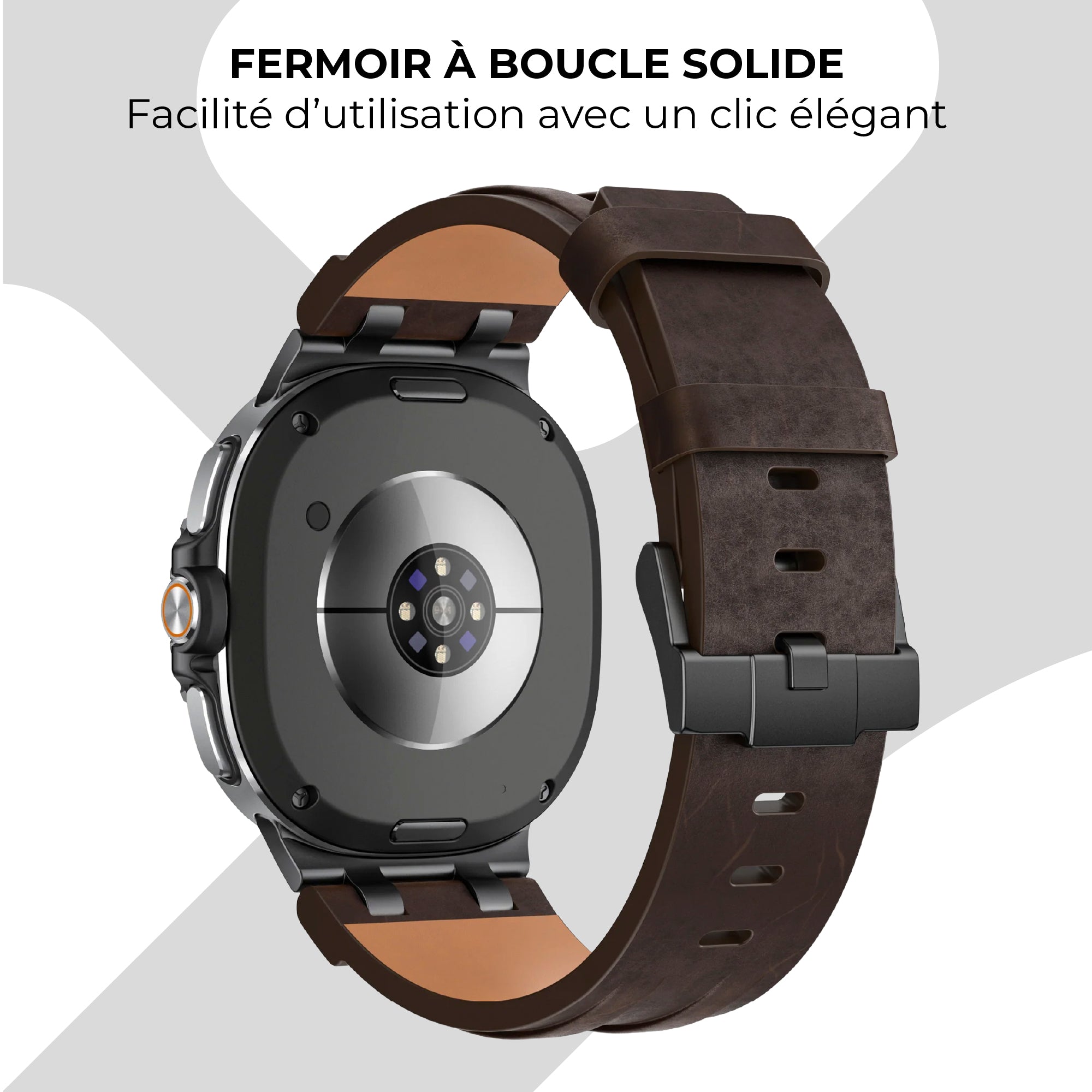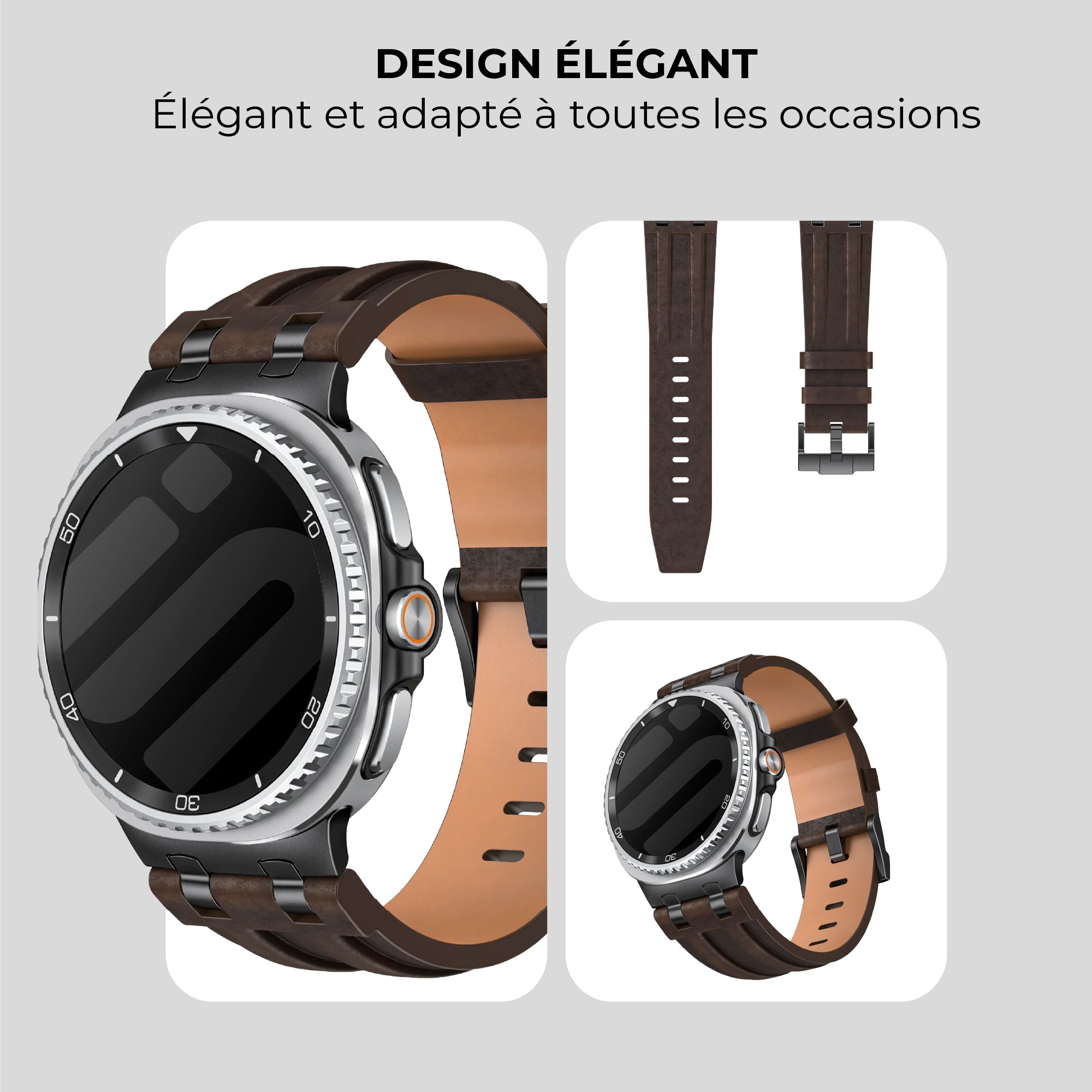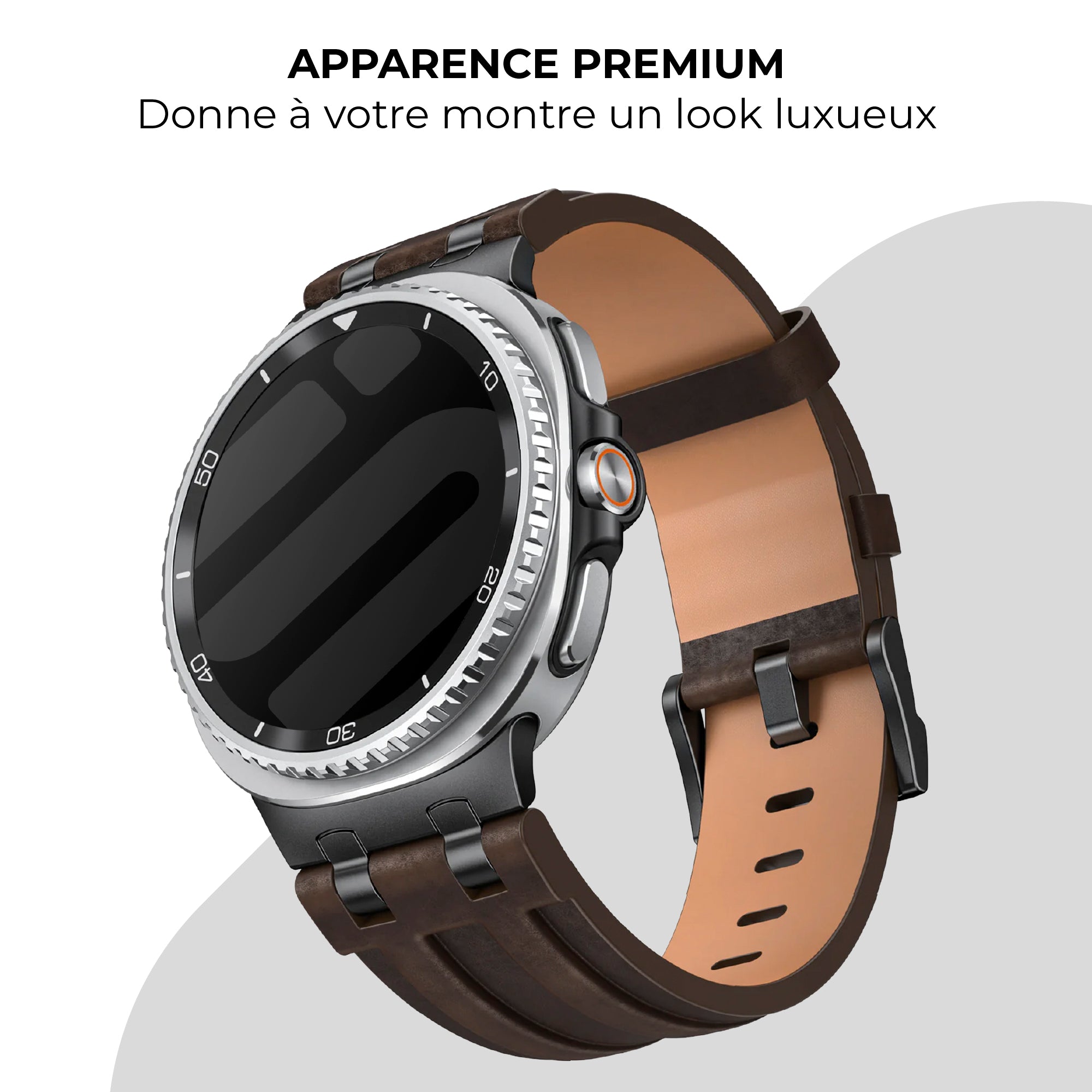 Bracelet cuir solide Samsung Galaxy Watch 8 Classic (marron café)