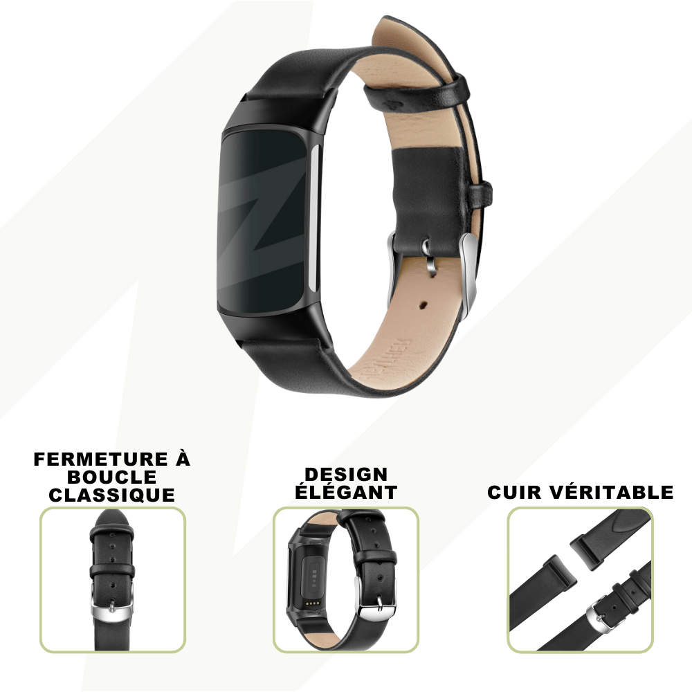 Bandz Bracelet cuir véritable Fitbit Charge 5 (noir)