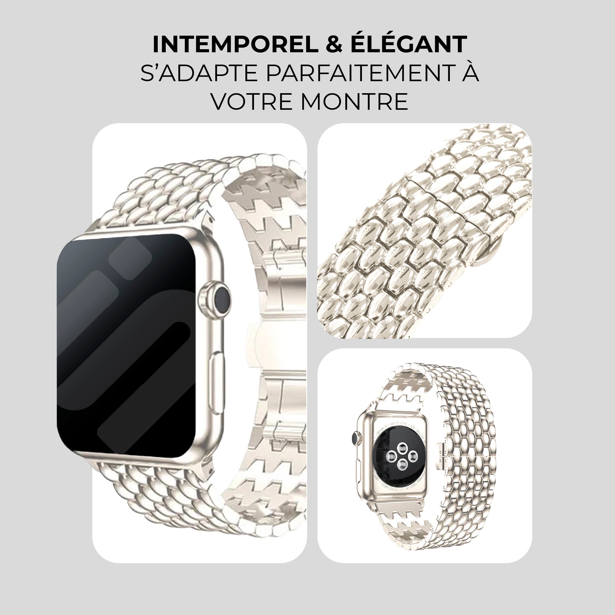 Bracelet acier dragon Apple Watch (lumière stellaire)