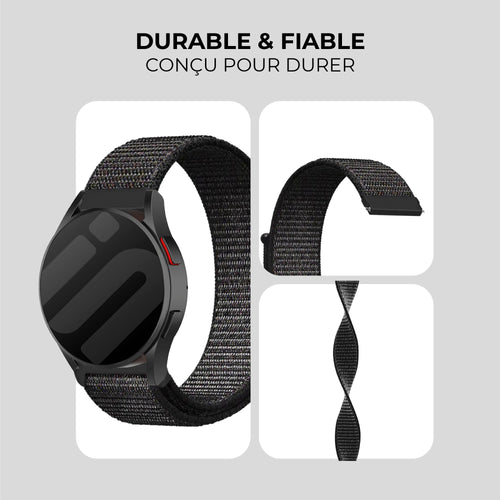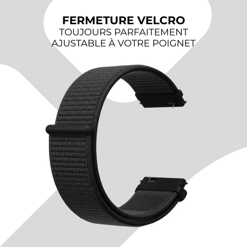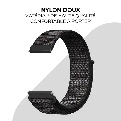 Avec ses 22 mm, ce bracelet en nylon convient à plusieurs montres. Vérifiez toujours soigneusement si votre smartwatch ou votre montre convient.