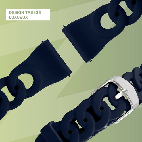 Bracelet Bandz Oozoo pour Smartwatch 20mm Silicone 'Chains' (Bleu Foncé)