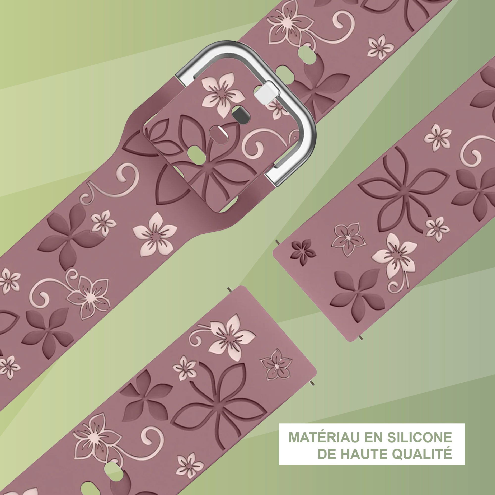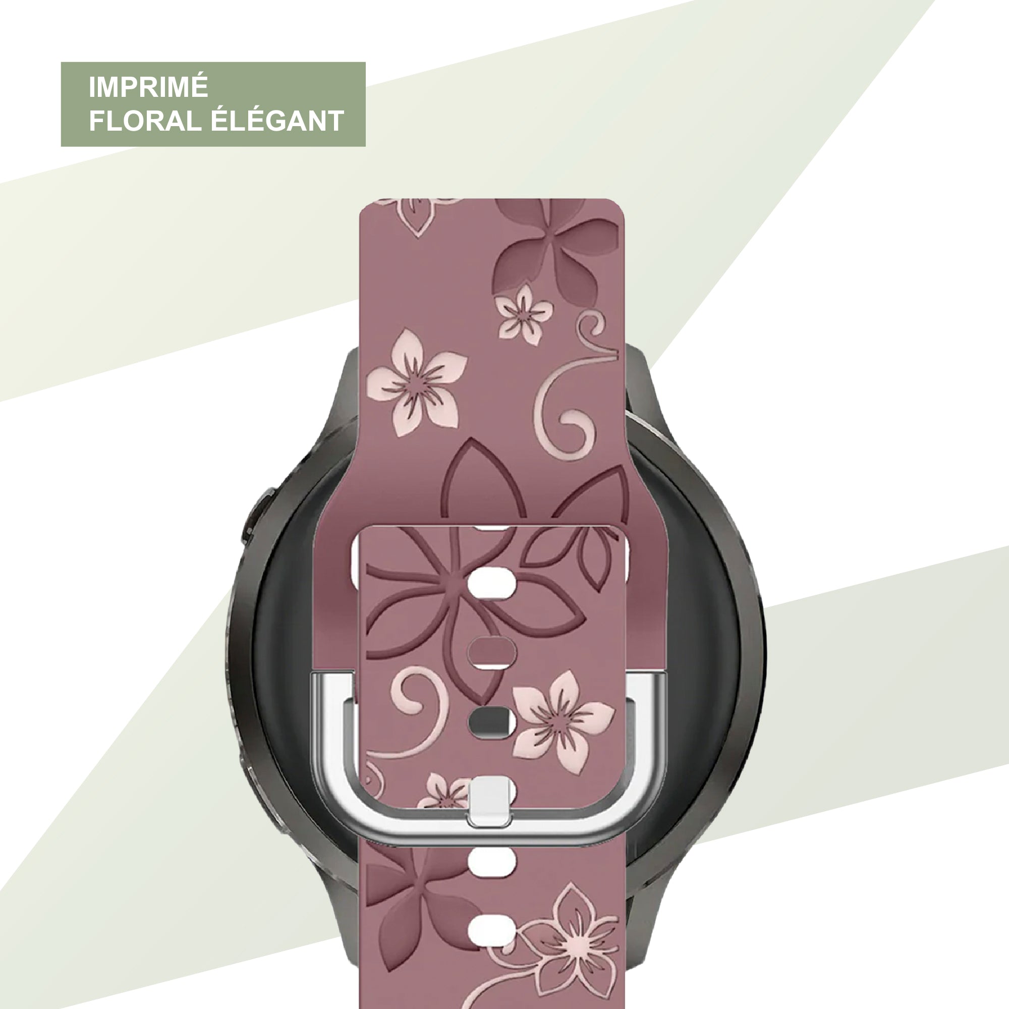 Bandz Bracelet silicone 'Fleurs' Garmin Vivoactive 4s (violet foncé/rose clair)
