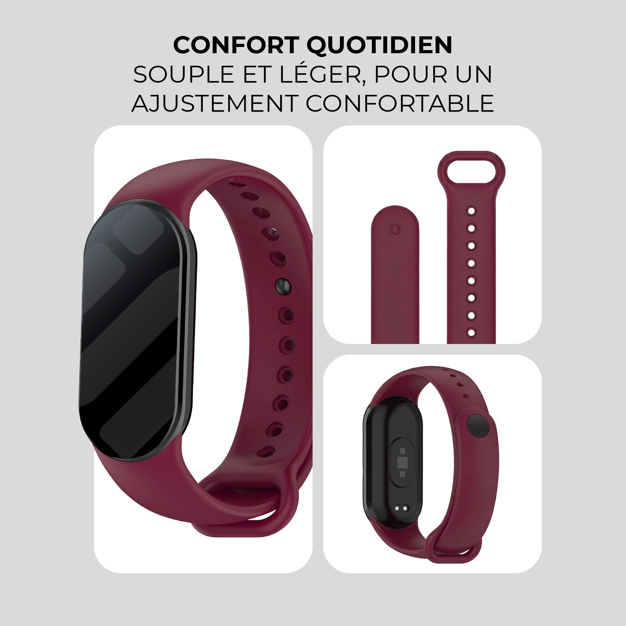 Bracelet silicone Xiaomi Smart Band 9 (vin rouge)