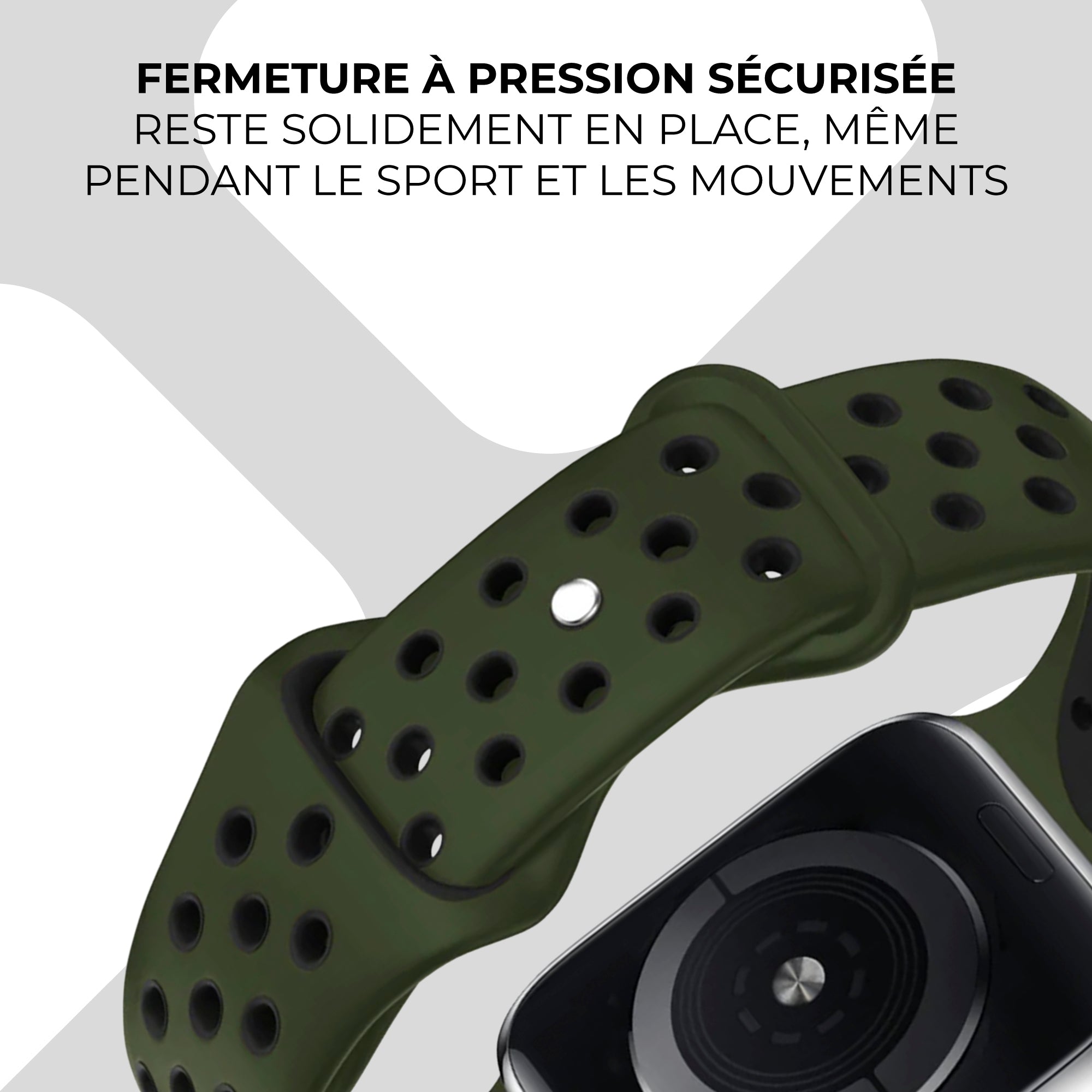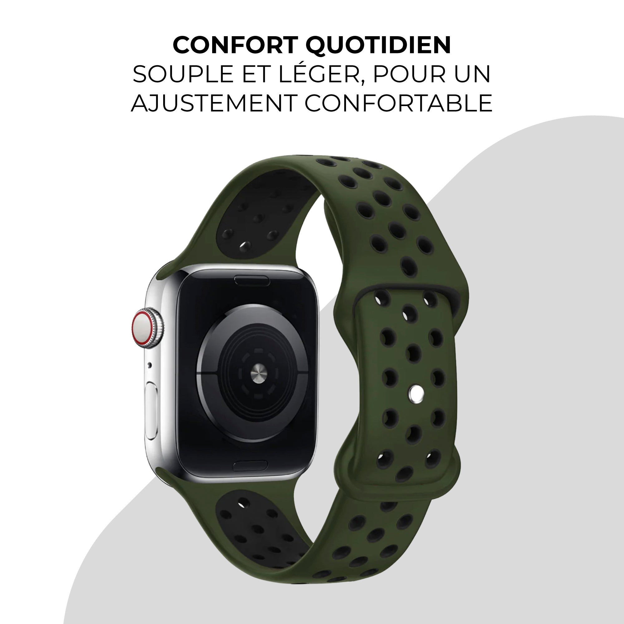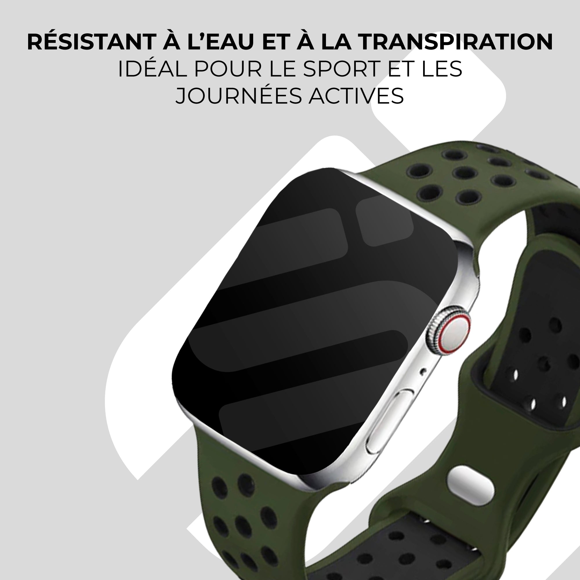 Bracelet Apple Watch sport (vert olive/noir)