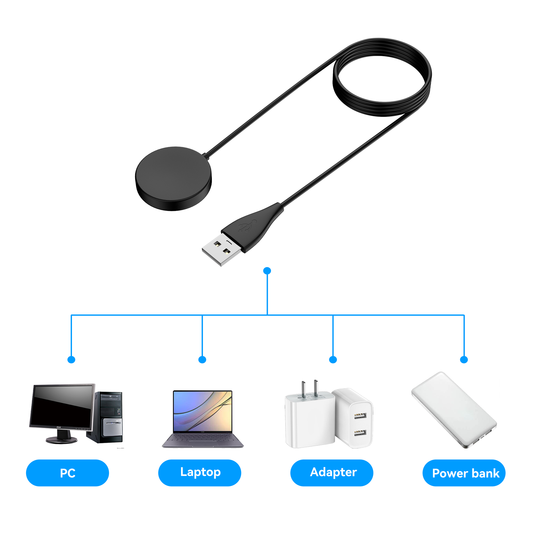 Chargeur USB-A Samsung Galaxy Watch Active (2) (noir) - 100cm